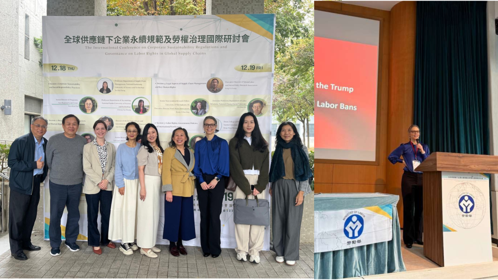 Her keynote, “Supply Chain Management under the Trump Administration: from Trade Agreements to Forced Labor Bans,” examined how shifting U.S. trade policy and enforcement tools shape corporate supply chain strategy, with a focus on labor rights compliance and emerging forced labor restrictions. A short video from her time in Taiwan was shared in an Instagram reel.