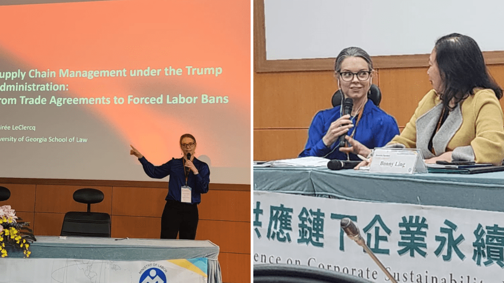 University of Georgia School of Law Professor Desirée LeClercq delivered a keynote address at the International Conference on Corporate Sustainability Regulations and Governance on Labor Rights in Global Supply Chains, held in Douliu, Taiwan, on 19 December 2025.