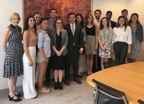 Also at the ICJ, Julia Sherman, a Judicial Fellow who works with Judge Donoghue, provided a tour of the ICJ’s headquarters, the 105-year-old Peace Palace. Sherman led students through the life cycle of an ICJ case, and also gave overviews of some recently decided ICJ cases.