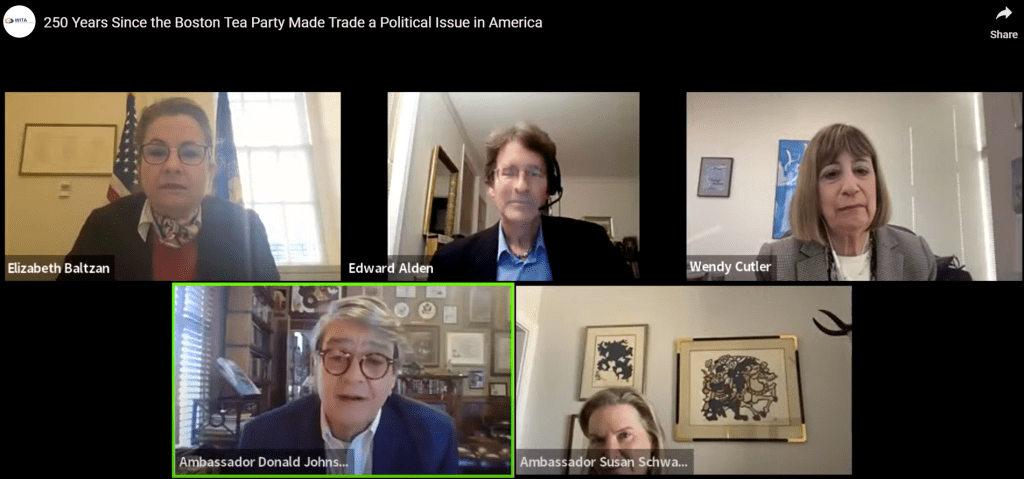 The Washington International Trade Association (WITA) hosted two panels last month to discuss changing attitudes toward trade in the 250 years since the Boston Tea Party. Taking part in the panel was University of Georgia School of Law alumnus and Director Emeritus of the law school’s Dean Rusk International Law Center, Ambassador C. Donald Johnson.