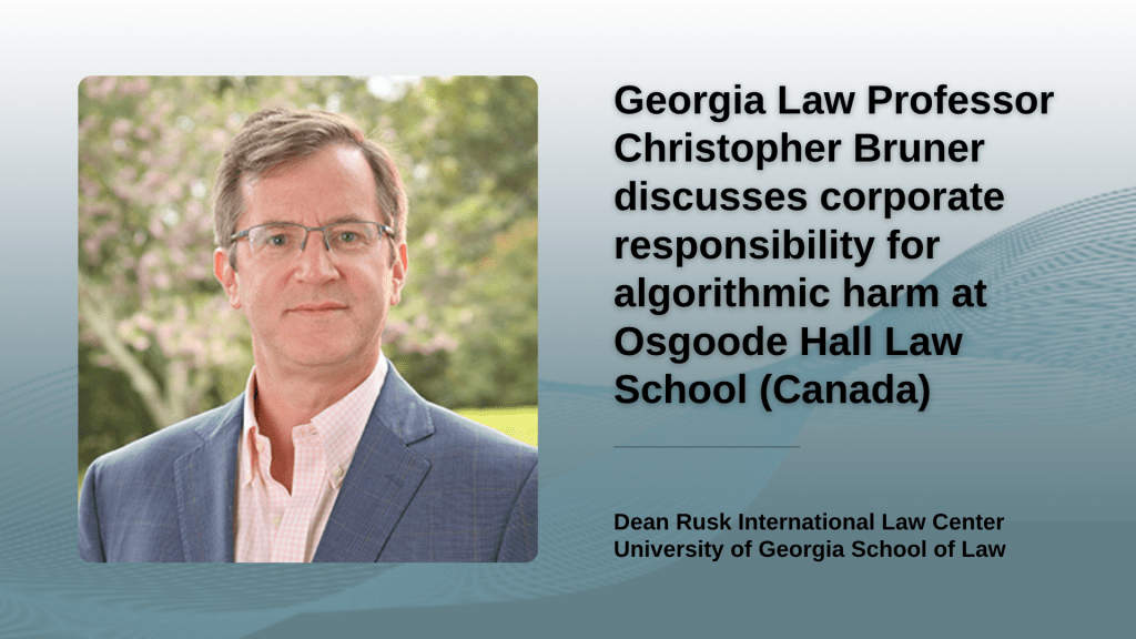 University of Georgia School of Law Professor Christopher Bruner presented on “Fraud, Manipulation, and Accountability in the Age of AI” in February as part of the panel discussion “When AI Hurts: Corporate Responsibility for Algorithmic Harm,” hosted by Osgoode Hall Law School at York University in Canada.
