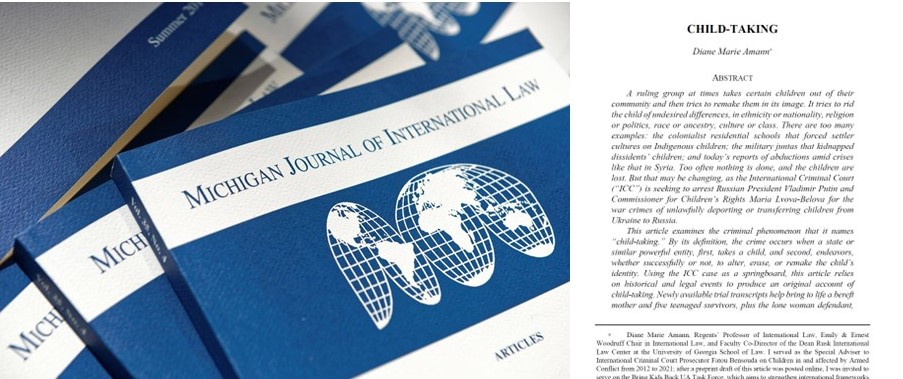 This new publication continues scholarly research that Amann first explored in her article “Child-Taking,” 45 Michigan Journal of International Law 305 (2024), and that she has presented at many universities and other learned societies in the United States, Ireland, and the United Kingdom.
